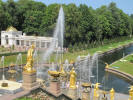 PETRODVORCE, letného cárskeho sídla. Krásny park s fontánami podľa